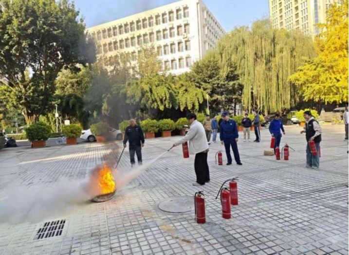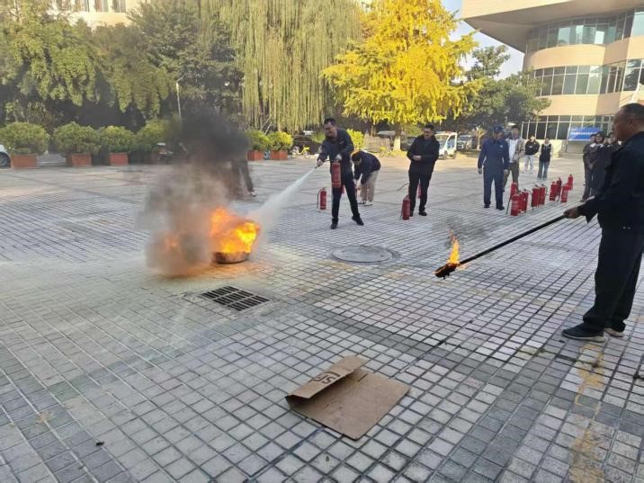 应急演练阶段,蒋豪组织全体师生前往大学生会堂前的空地,进行了灭火器的实操演练。在他的专业指导下,每位师生都亲手操作,熟练掌握了灭火器的正确使用方法。