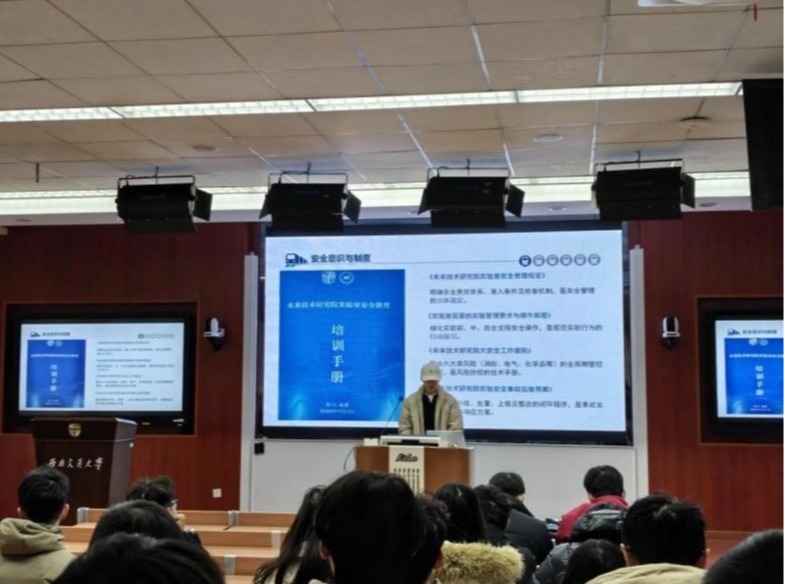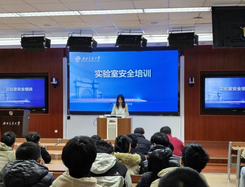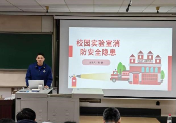 政策宣贯阶段,吴琦老师以《西南交通大学实验室安全管理》为题,从“国家对实验室安全管理的要求”“我校实验室安全管理工作”“我们身边的安全隐患”与“我校实验室安全教育宣传活动”等四个方面进行宣讲。她从国家宏观要求、学校管理体系、身边具体隐患到校园安全活动,层层递进,逻辑清晰,有效提升了师生对实验室安全体系的整体认知,为筑牢安全防线奠定了坚实的思想基础。随后,蒋豪进行消防安全培训,他以触目惊心的真实案例为切入点,围绕办公区与实验室的环境安全、防火灭火、用电规范等关键环节展开,并重点强调了办公室用电安全、气瓶供应商资质核验、逃生面罩配备及实验室通风等实操细节,将安全要求落到了实处。