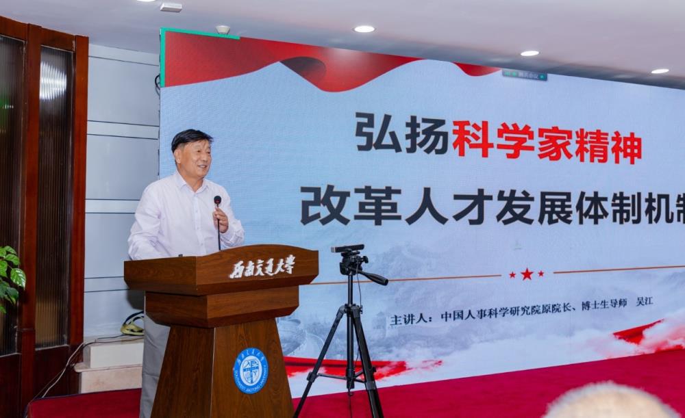 吴江做了题为“弘扬科学家精神,改革人才发展体制机制”主题报告。他系统回顾和全面分析了世界人才高地的转移过程,认为建设世界人才高地必须破除人才培养、使用、评价、服务、支持、激励等方面的体制机制障碍,并从以简政放权松绑为重点、建立以信任为基础的人才使用机制和破解人才“最后一公里”障碍的清单管理制度三个方面,阐释了全面深化人才体制机制改革的具体举措,推动加快建成世界重要人才中心和创新高地。