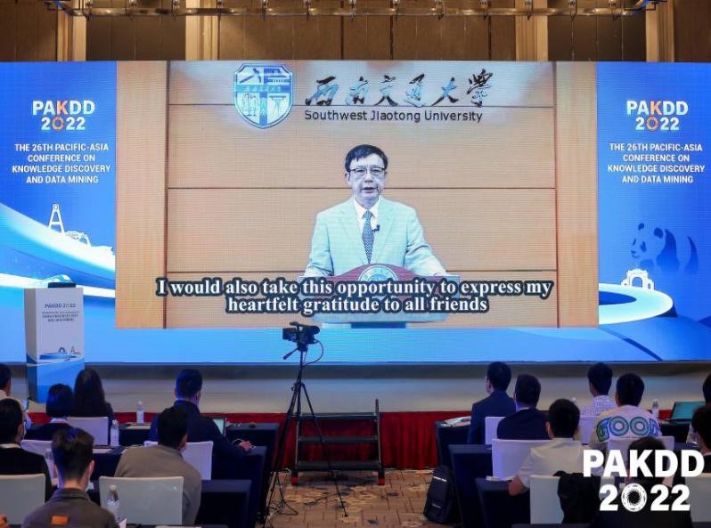 、网络教育学院承办、四川省人工智能学会等协办的第26届亚太知识发现和数据挖掘会议(The 26th Pacific-Asia Conference on Knowledge Discovery and Data Mining, PAKDD2022)作为学校126周年校庆系列活动之一在成都圆满召开。西南交通大学校长杨丹教授,加拿大国家科学院/工程院院士、西蒙-弗雷泽大学Jian Pei教授,德国科学院院士、马克斯-普朗克智能系统研究所Bernhard Schölkopf教授,PAKDD指导委员会主席、台湾新竹交通大学Vincent S. Tseng教授,澳大利亚悉尼科技大学Longbing Cao教授,京东集团副总裁、京东数字科技首席数据科学家郑宇教授,中国科技大学大数据学院执行院长陈恩红教授,中国人民大学信息学院院长文继荣教授,西南交通大学计算机与人工智能学院党委书记李天瑞教授,南京大学俞扬教授等嘉宾出席了本次会议。受全球新冠疫情影响,本届会议采用线上线下同时举办的方式,实现全球参会人员实时联动。开幕式由大会程序委员会共同主席、西南交通大学计算机与人工智能学院党委书记李天瑞教授主持。