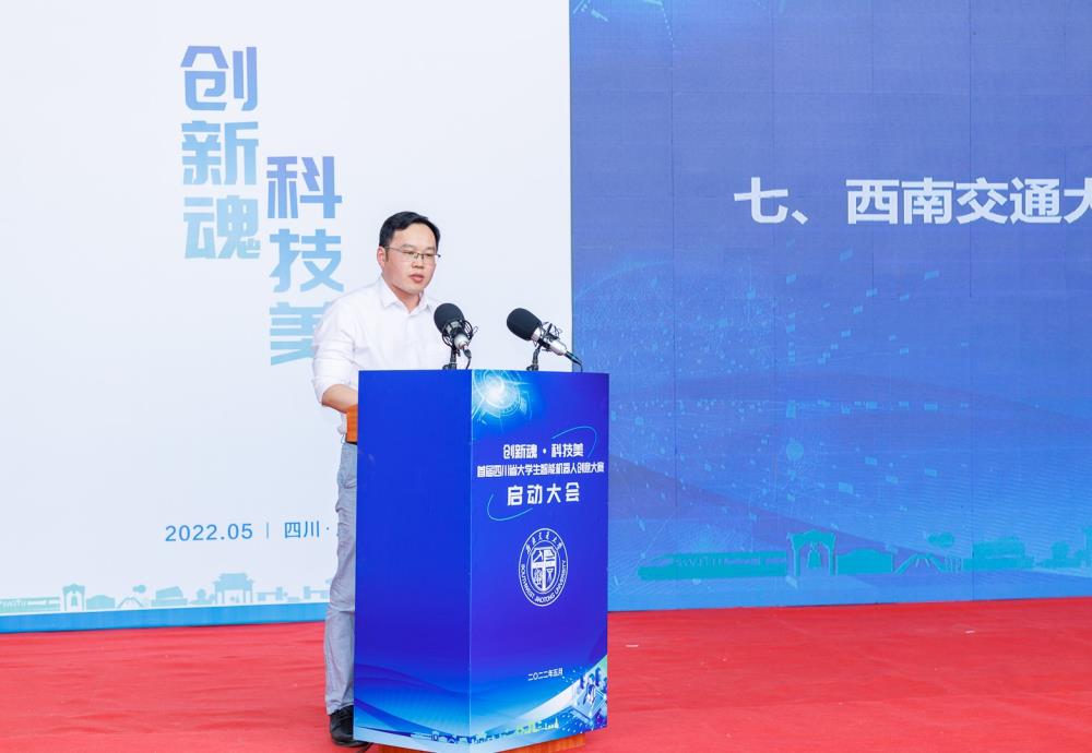 西南交通大学教务处处长、四川省大学生智能机器人创意大赛组委会副主任崔凯介绍大赛筹办情况。西南交通大学作为首届大赛的承办单位,目前已面向全省高校发布通知,大赛包含三个主题:一是创意设计,家用智能机器人——让生活更美好;二是创意竞技,魔方机器人——挑战更快;三是智能机器人对抗赛——挑战更强。大赛采用初赛、决赛赛制,由大赛专家委员会评选出各等级奖项并确定第五届中国高校智能机器人创意大赛四川省推荐作品名单。西南交通大学将以此为契机,继续搭建各类科创竞赛平台,持续推进人才培养模式改革,完善高水平人才培养体系,坚守为党育人、为国育才初心,为培养堪当民族复兴重任的时代新人、推进科技自立自强、服务国家战略贡献交大力量。