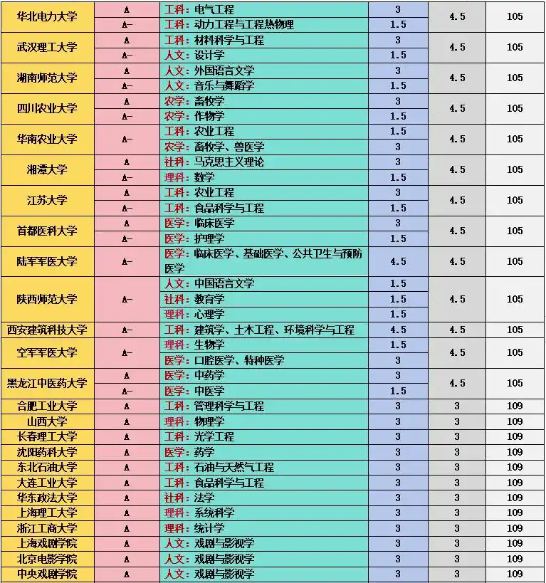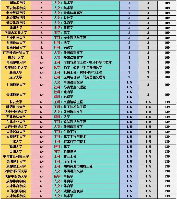 全国高校第五轮学科评估结果A类专业汇总