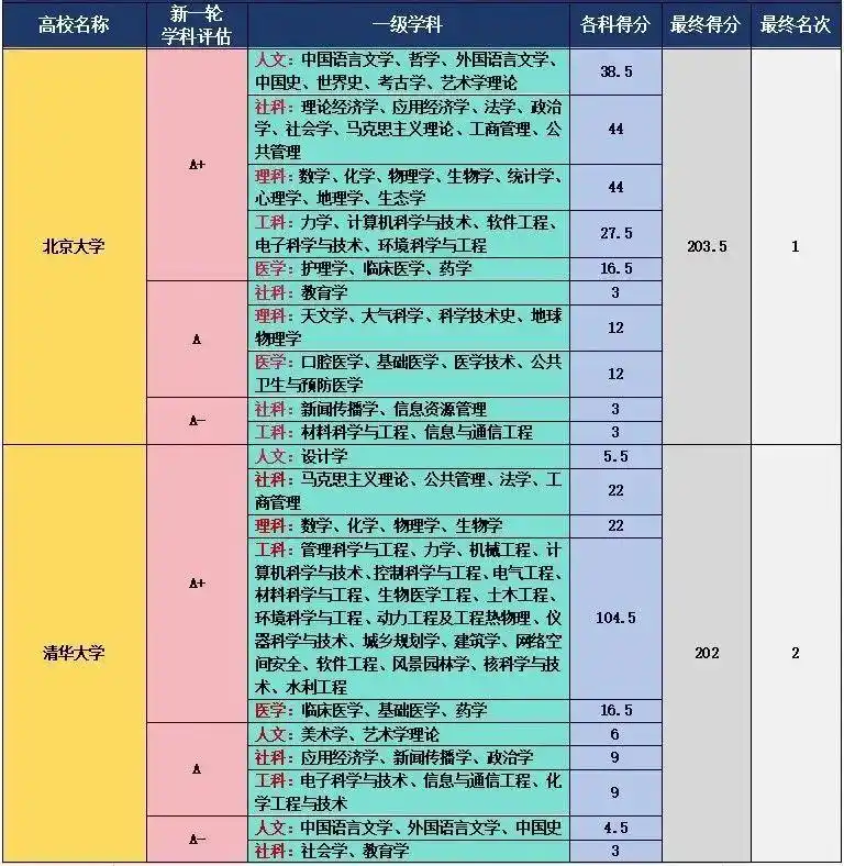 在第五轮学科评估中,985 高校展现出了超强的综合实力,堪称 “神仙打架” 。北京大学和清华大学作为国内顶尖高校,再次彰显了其霸主地位。北大的 A + 学科数量众多,在文理医领域优势明显,像数学、化学、物理学、生物学、统计学、中国语言文学、外国语言文学等学科均获得 A+ 。清华则在工科领域独占鳌头,31 个 A + 学科涵盖了机械工程、计算机科学与技术、控制科学与工程、电气工程、材料科学与工程等众多王牌工科专业,其在工科领域的科研实力和教学质量令人瞩目,为国家培养了大量顶尖工科人才 。