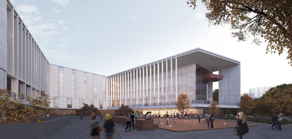 有限公司。目前,建筑方案已经基本确定,建筑造型提取五线谱中“音符”的意向并加以抽象,以带状连贯的形体漂浮在基座之上,象征着学校铿锵有力、蓬勃向上的科研精神,助力交大谱写校园创新发展的豪迈乐章。