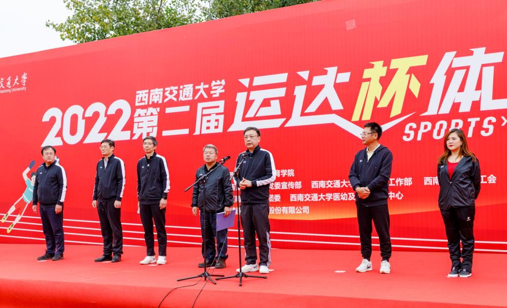 习近平总书记提出“广泛开展全民健身活动,加强青少年体育工作,促进群众体育和竞技体育全面发展,加快建设体育强国”;为深入贯彻学习党的二十大精神,落实学校第十五次党代会精神,加强全民健身运动;培养师生健康意识,促进师生健康锻炼,提高师生健康素养。11月6日,西南交通大学体育学院与成都运达科技股份有限公司联合举办第二届“运达杯”体育节。西南交通大学校长杨丹、副校长周仲荣,成都运达科技股份有限公司董事长何鸿云、副董事长兼首席专家朱金陵、市场与战略部经理刘淼雨、西南交通大学党政办主任靳能法、学生工作部部长高平平、党委保卫部部长张占军、工会主席郑江、团委书记张军琪、体育学院党委书记潘喆、研究生院常务副院长周先礼出席开幕式。西南交通大学体育学院院长刘江主持开幕式。