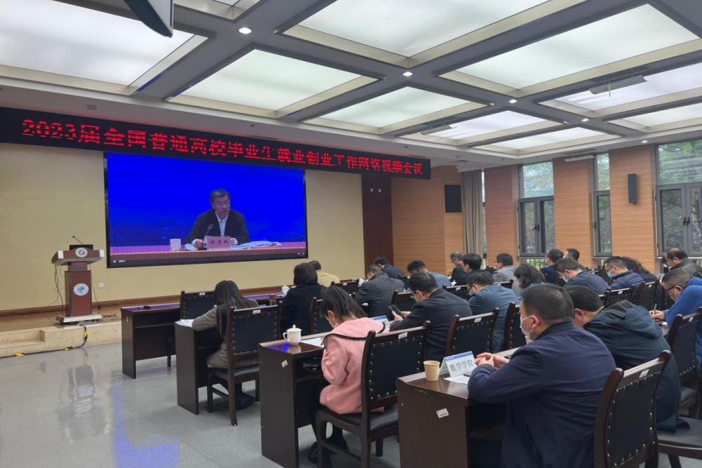 党政办公室、党委学生工作部、校团委、党委人民武装部、教务处、研究生院、招生就业处、创新创业学院、各培养单位学生工作负责人和2023届毕业班辅导员参加了会议。