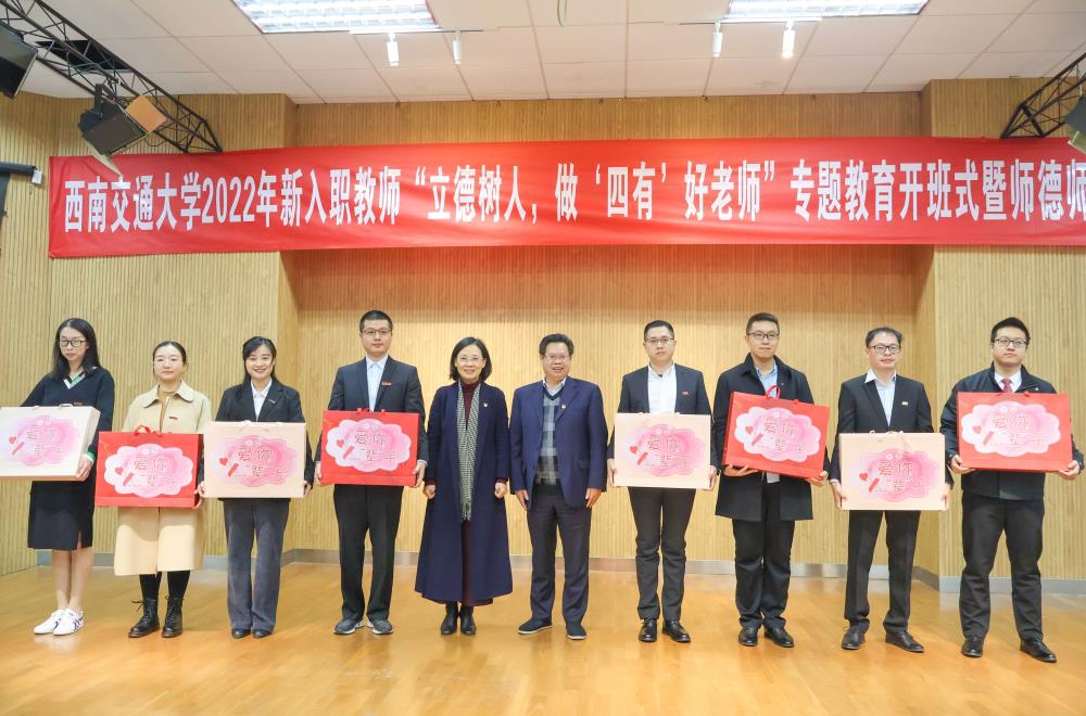 11月16日下午,西南交通大学2022年新入职教师专题教育开班式暨师德师风大讲堂在犀浦校区设计学院A300多功能厅举行。校党委副书记杨爱华,党委常委、副校长姚发明出席活动。