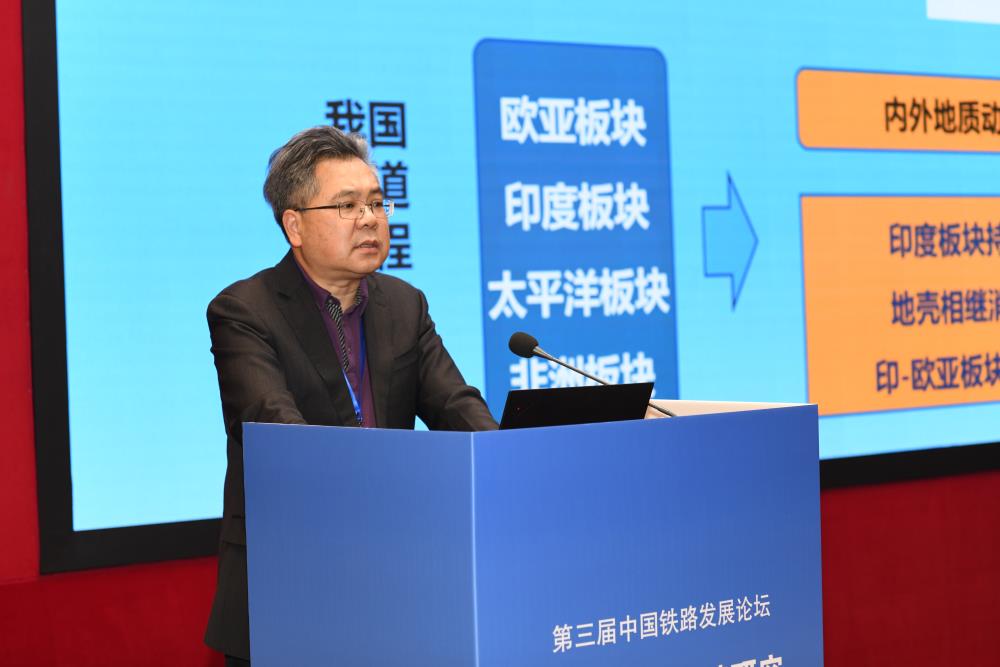 中国国家铁路集团有限公司副总经理王同军就“我国智能发展成就与展望”进行主题报告;中国工程院院士何华武、杜修力分别就“我国交通运输发展成就、典型热点问题思考、西部地区铁路桥隧地震安全问题”进行主题报告;中国科学院院士翟婉明就“高速铁路基础结构动态性能演变及服役安全”进行主题报告,中铁二院工程集团有限责任公司总经理扈森与石家庄铁道大学党委书记杨绍普分别就“复杂艰难山区铁路勘察设计技术创新与轨道交通”进行主题报告,西南交通大学副校长何川就“隧道工程抗震分析方法及穿越活动断裂带对策”进行主题报告。