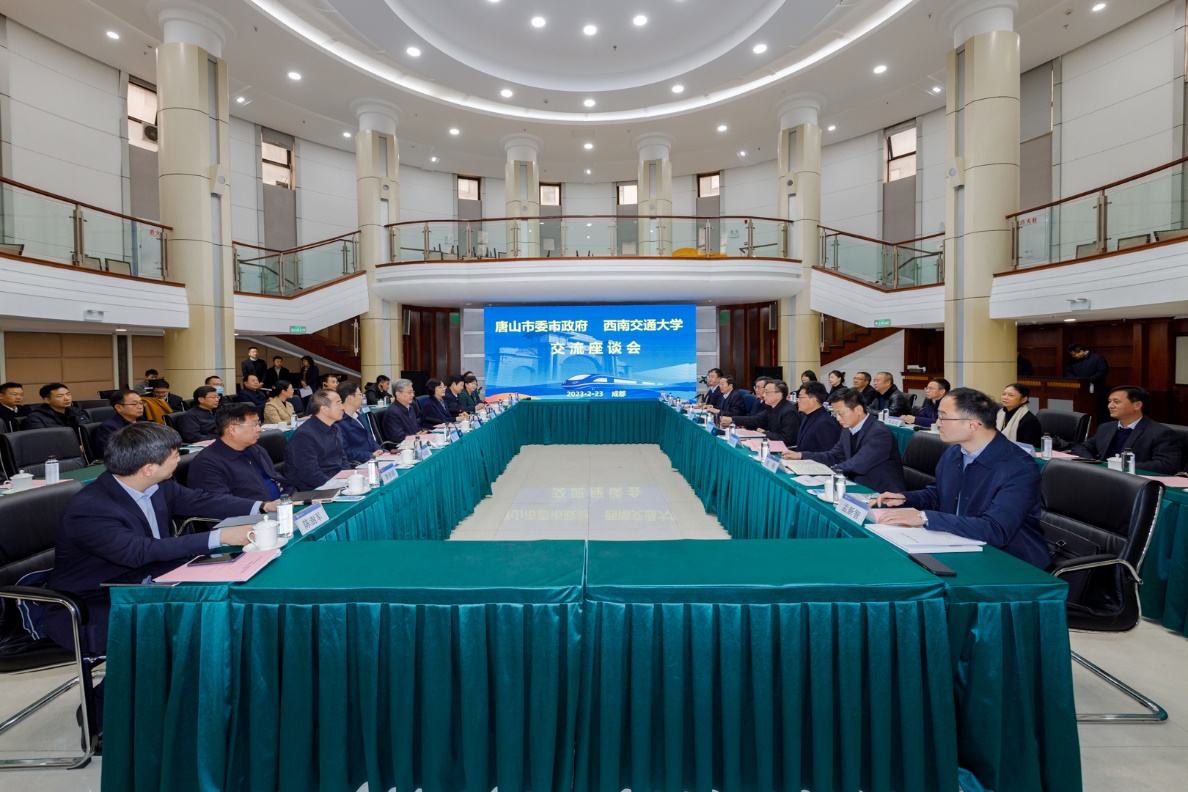 王顺洪在讲话中表示,唐山是中国铁路的发源地,也是我校的肇兴之地,学校在唐山办学66年,是唐山养育了交大,也是在唐山学校培养和造就了一大批蜚声海内外的科学泰斗、学术大师、行业翘楚;“竢实扬华、自强不息”的精神内核和“严谨治学、严格要求”的优良传统积淀于此并赓续百年,唐山寄托了众多海内外校友的集体回忆和深厚情感,每年仍有大批校友返回唐山寻根。学校内迁入川51年来,与唐山的血脉亲缘一直延续,唐山市与学校始终沟通不断,往来交流频繁,合作的广度深度不断拓展,模式机制更加成熟。他强调,2023年是深入学习宣传贯彻党的二十大精神的开局之年,是贯彻落实学校第十五次党代会精神、加快推进新一轮“双一流”建设的奋进之年,更是与唐山市携手同心,共同谱写全面深化市校合作新篇章的关键之年,学校高度重视与唐山的市校合作,尤其是学校常驻唐山的工作团队,务必要迅速高效抓实抓好园区筹备工作,充分发挥好桥梁纽带作用,积极努力推进园区的建成和正式运营。学校将以更好的成绩、更好的成果回馈唐山人民,推动双方合作迈入共生共荣、相互成就的新阶段。
