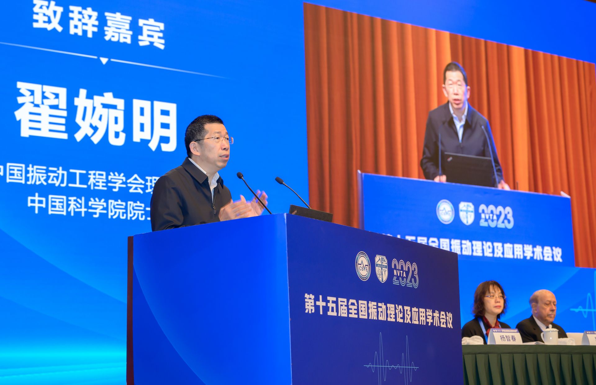 翟婉明院士代表中国振动工程学会对莅临会议的领导、嘉宾以及来自全国各地的专家学者表示热烈欢迎和衷心感谢。他表示,新一届理事会将传承振动工程学会前辈学者的光荣传统,不忘初心、牢记使命,努力开创学会工作的新局面。翟婉明在讲话中简要回顾了全国振动理论及应用学术会议的历史,中国振动工程学会成立三十六年以来,一直将全国振动理论及应用学术会议作为学会最重要的系列学术活动,积极推动学术交流与合作,形成了一个颇具有影响力的学术品牌。他表示,此次会议将进一步推动中国振动工程学会的学术交流和科技服务工作,推进我国振动工程科学技术的发展。