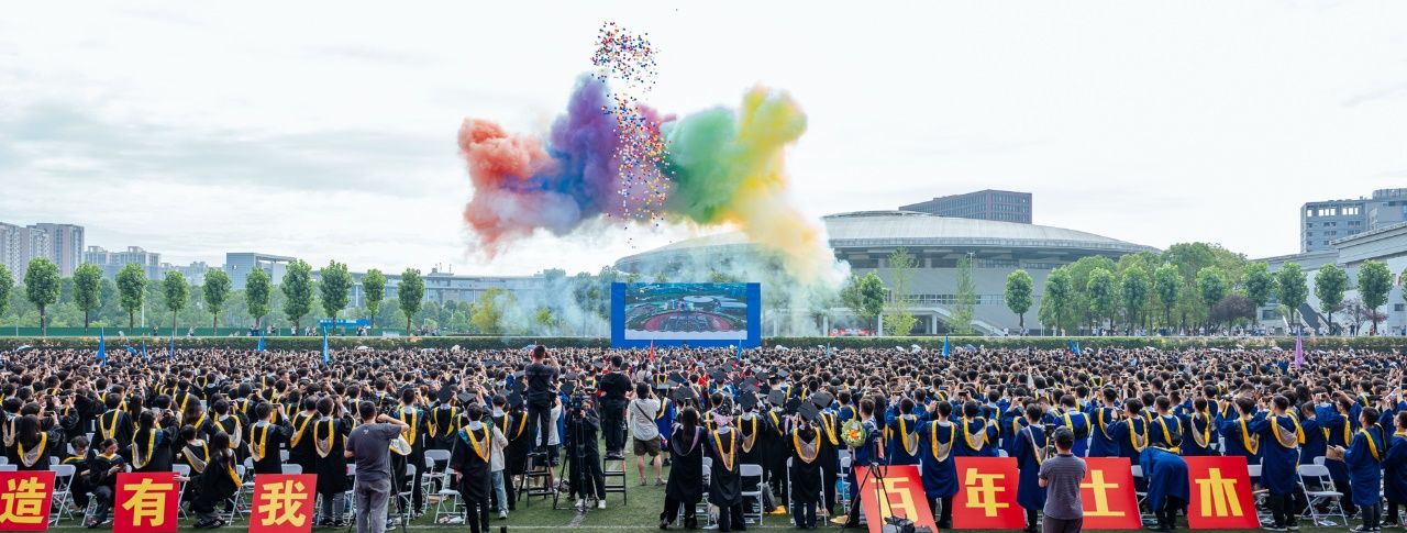 彩烟绽放,气球升空,《祝你一路顺风》歌声响起,主席台就座领导目送全体毕业生离场。愿2024届毕业生铭记“竢实扬华,自强不息”的交大精神,不负韶华,不负时代,以良好的精神风貌踏上新征程,书写为中国式现代化挺膺担当的青春篇章。