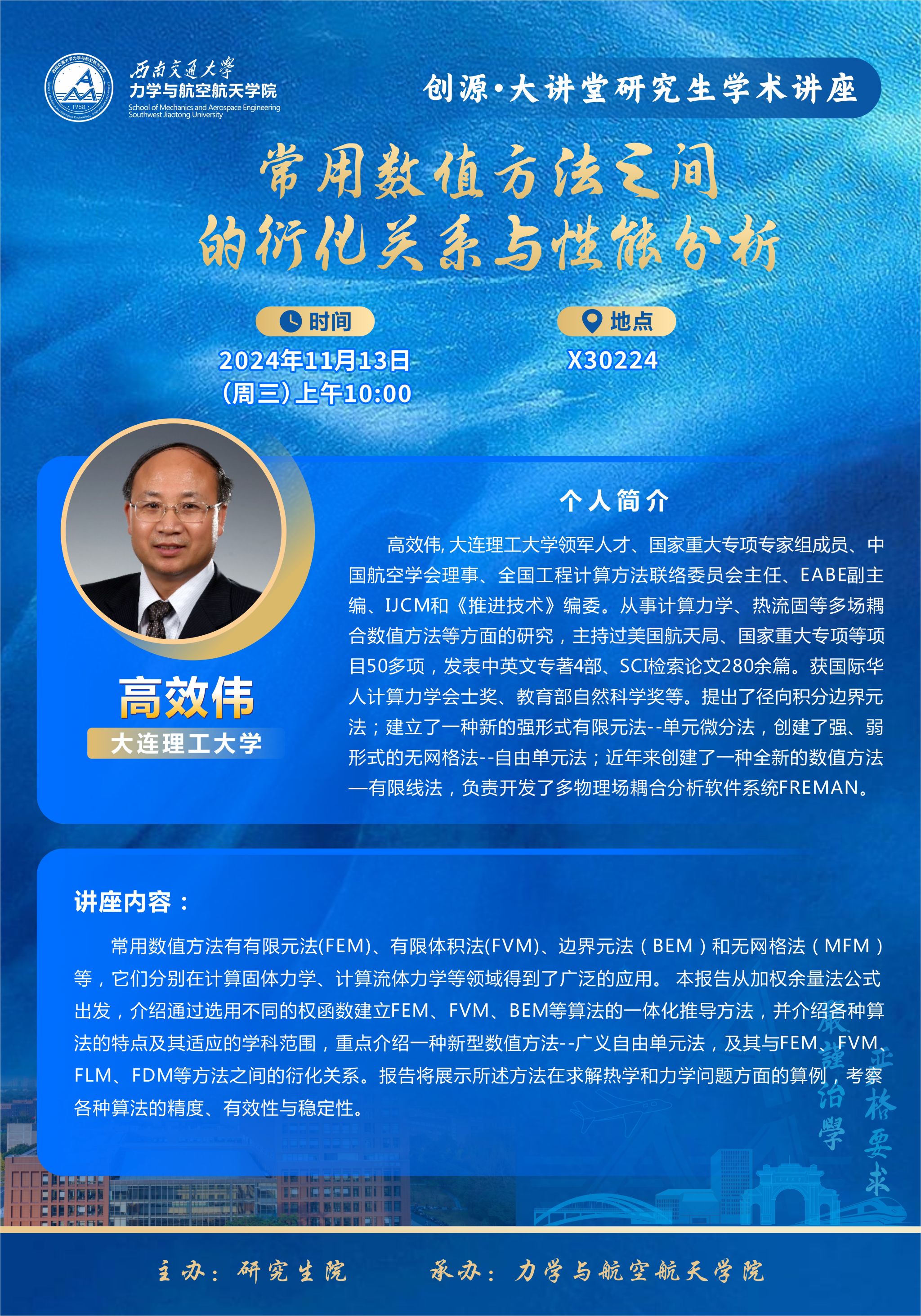 常用数值方法有限元法(FEM)、有限体积法(FVM)、边界元法(BEM)和无网格法(MFM)等,它们分别在计算固体力学、计算流体力学等领域得到了广泛的应用。 本报告从加权余量法公式出发,介绍通过选用不同的权函数建立FEM、FVM、BEM等算法的一体化推导方法,并介绍各种算法的特点及其适应的学科范围,重点介绍一种新型数值方法--广义自由单元法,及其与FEM、FVM、FLM、FDM等方法之间的衍化关系。报告将展示所述方法在求解热学和力学问题方面的算例,考察各种算法的精度、有效性与稳定性。
