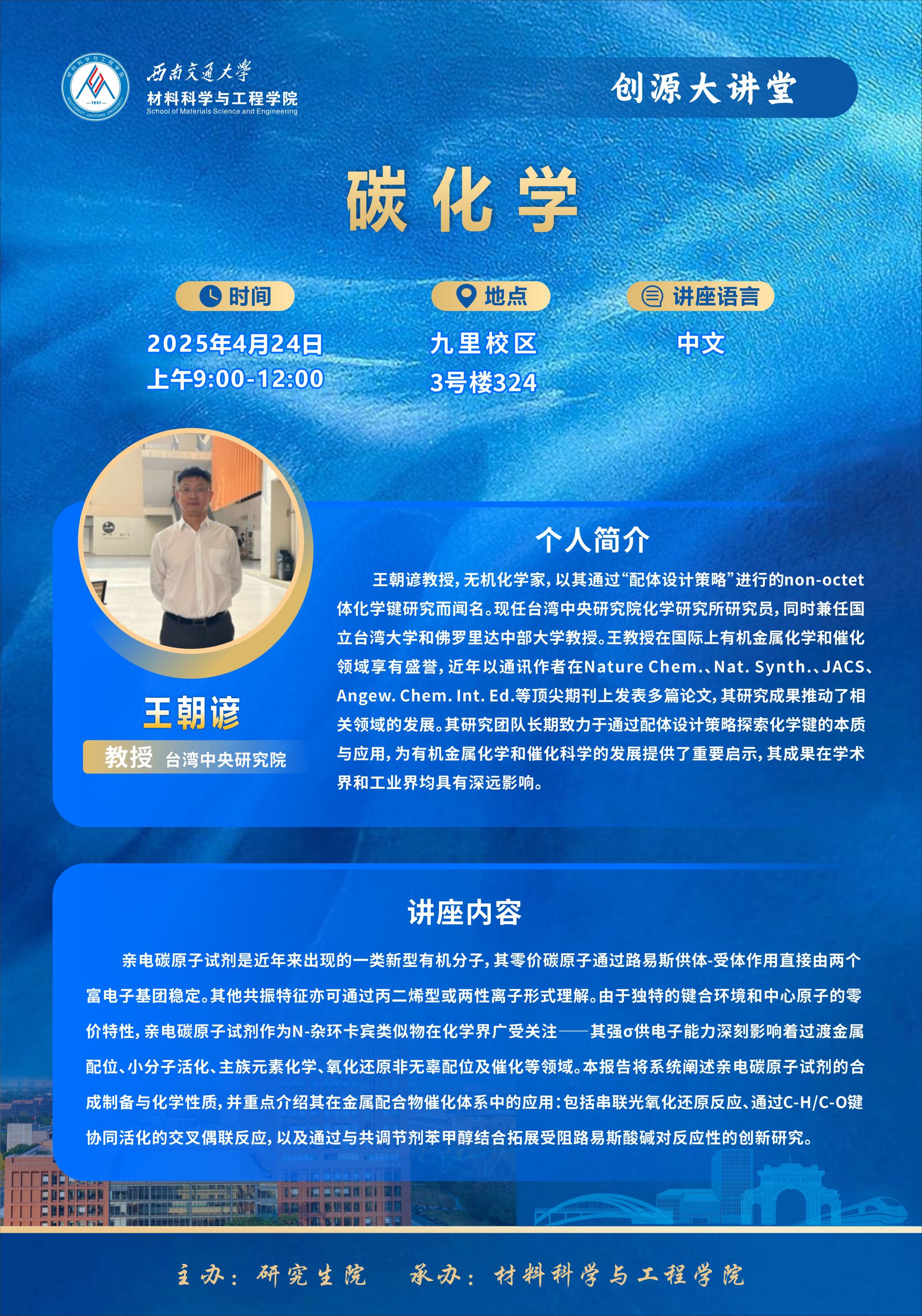 化学研究所研究员,同时兼任台湾大学和佛罗里达中部大学教授。王教授在国际上有机金属化学和催化领域享有盛誉,近年以通讯作者在Nature Chem.、Nat. Synth.、JACS、Angew. Chem. Int. Ed.等顶尖期刊上发表多篇论文,其研究成果推动了相关领域的发展。其研究团队长期致力于通过配体设计策略探索化学键的本质与应用,为有机金属化学和催化科学的发展提供了重要启示,其成果在学术界和工业界均具有深远影响。